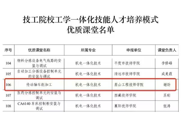 学院课程入选人社部工学一体化技能人才培养模式优质课...